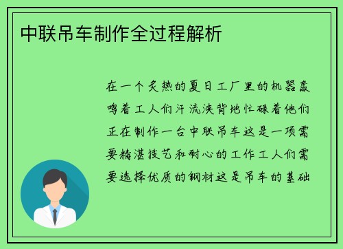 中联吊车制作全过程解析