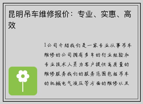 我们的昆明吊车维修报价是专业、实惠、高效的,我们的服务是全面、优质、可靠的。我们将一如既往地为客户提供最好的吊车维修服务,让客户的吊车始终保持良好的运行状态。如果您有吊车维修需求,请联系我们,我们将竭诚为您服务。